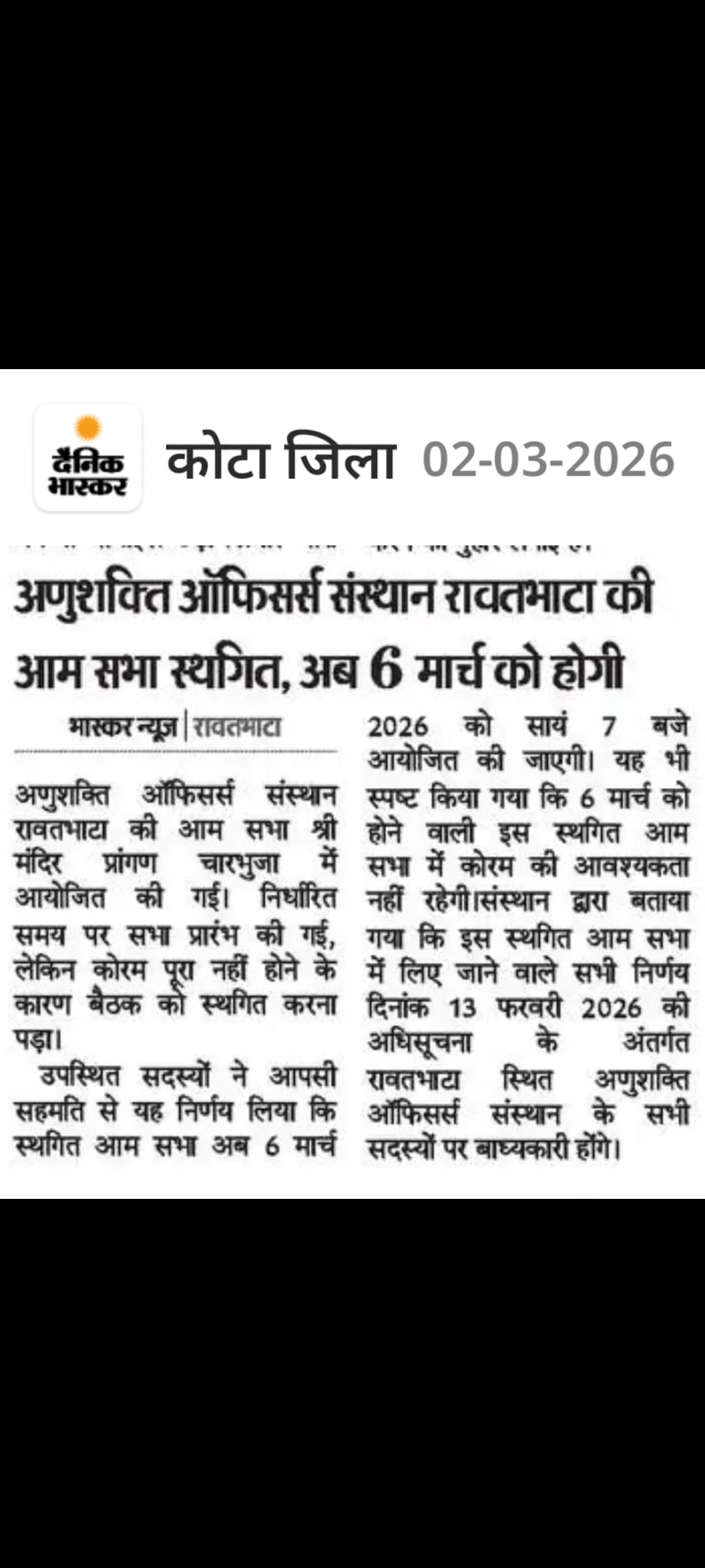 GB meeting of AOS for dissolution was scheduled on 28th Feb 2026. Due to lack of coram it was postponed to next date 6th March . It wil be convened at Yogamaya Restaurant at 7:00 PM evening on Friday 6th March .The Mandation of coram will not be there hence decision taken in this meeting will be in accordance with agenda published on 13th Feb 2026 will be abiding on all AOS members . All members are requested to kindly please make it convenient to attend the same . Have a Nice Day